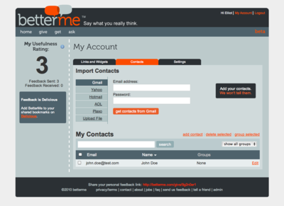 BetterMe was a platform that allowed anyone to give or receive feedback about anyone else. While preserving anonymity, BetterMe's site also allowed interaction between the giver and receiver so that questions could be answered and clarifications provided.