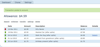 Parents of elementary aged children invariably confront the question of how to deal with allowance and chores. A mobile accessible website that makes it simple to track how much money your children have saved, what they've spent it on, and what chores they've done is a great solution for families that are trying to instill a sense of financial responsibility.