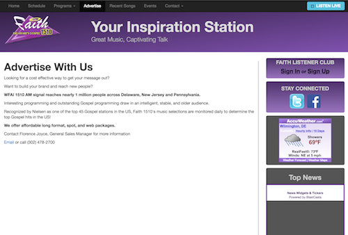 WFAI's had been using a proprietary web system for radio stations that was very expensive and required a multi-year contract. The WYSIWYG editor the site used often led to broken HTML that displayed poorly.