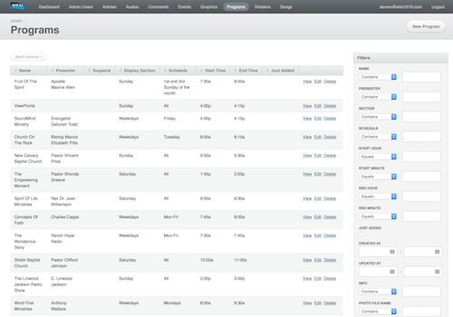Development Leverage built a site which allowed DJ's to quickly post banners, articles, or audio interviews and control layout on the home page. The site also maintained a schedule of hosts and allowed each to have a custom page about their show.