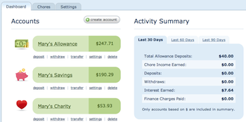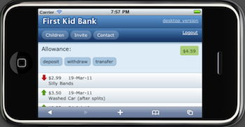Parents of elementary aged children invariably confront the question of how to deal with allowance and chores. A mobile accessible website that makes it simple to track how much money your children have saved, what they've spent it on, and what chores they've done is a great solution for families that are trying to instill a sense of financial responsibility.